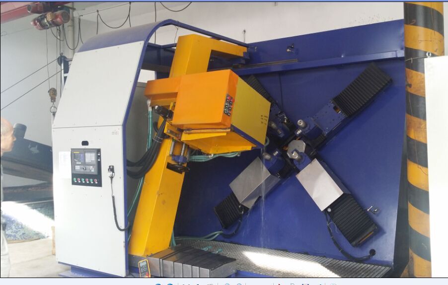 組成部件:機(jī)床采用水平移動(dòng)支座加回轉(zhuǎn)工作臺(tái)方式,變壓器上面具有左右、上下移動(dòng)的功能,回轉(zhuǎn)工作臺(tái)采用交流伺服電機(jī)驅(qū)動(dòng),導(dǎo)軌上面采用矩形直線導(dǎo)軌,另外回轉(zhuǎn)工作臺(tái)可自動(dòng)分齒。在淬火過(guò)程中無(wú)需人工調(diào)整,設(shè)備可自動(dòng)完成全部齒輪的淬火。